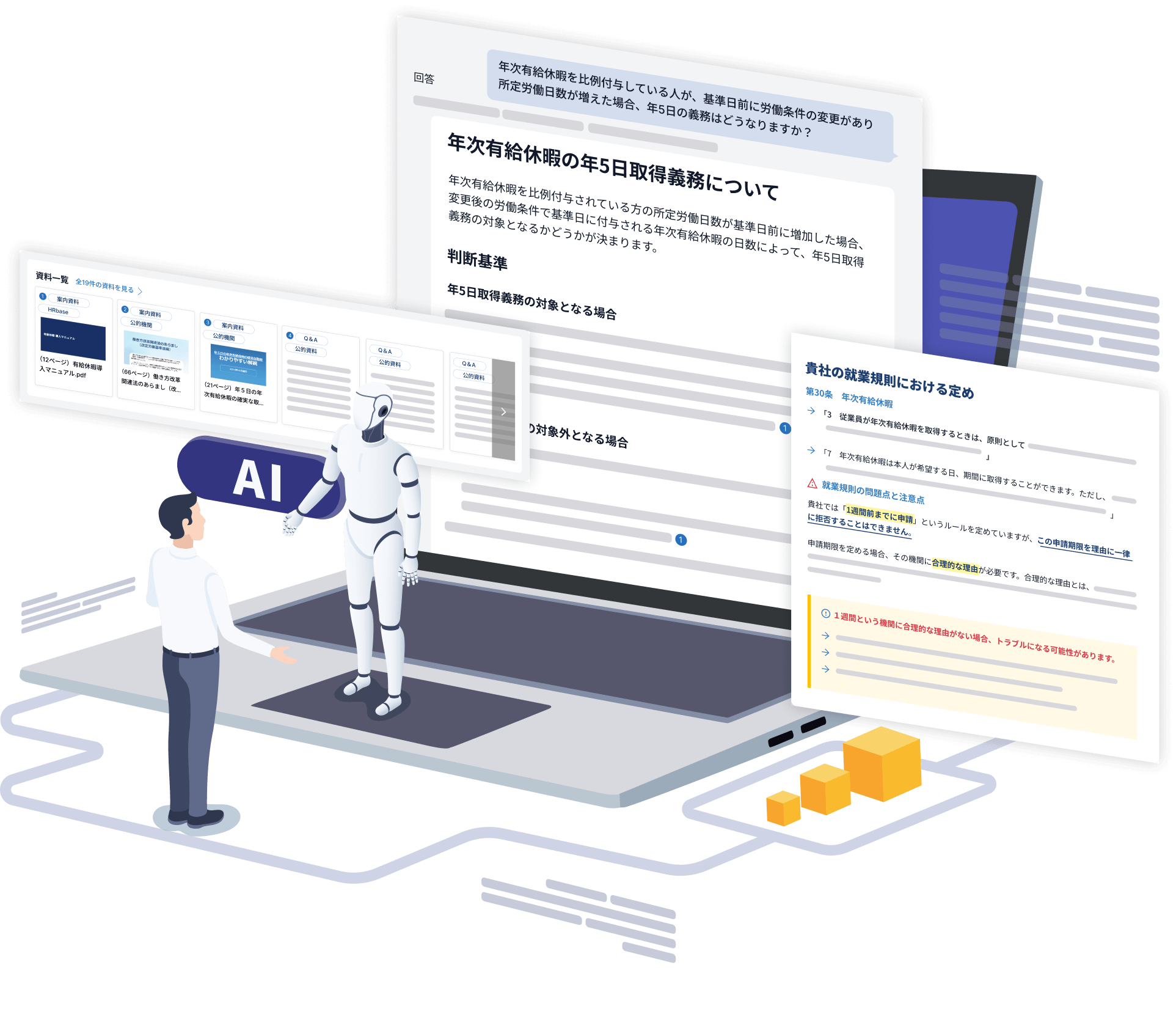 回答、根拠情報、参考資料が即座に提示されるから、調査から顧問先への説明までスピーディに行えます。