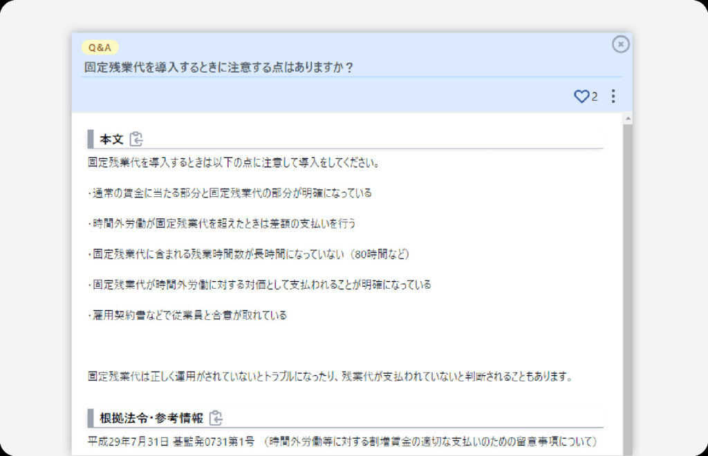 労務相談の質問を入力することで、関連資料の収集から回答の要約作成までを自動化。