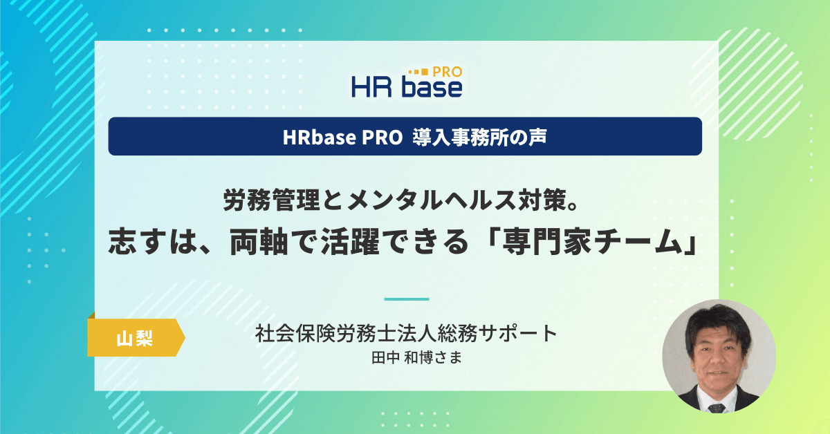 私がIT企業出身ということもあり、クラウドは積極導入しています。ITコーディネーターの資格も取りましたし、クラウドツールの導入は山梨県では早い方だったと思います。HRbase PROも、知ったときに「よいものが出てきた」と、すぐに導入を検討しました。