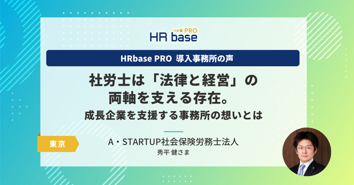 事業拡大期に、労務問題が増えるのは当然です。しかし、それぞれの担当者から個別に相談が来たり、社内でのノウハウ共有がうまくいかない…という課題があるなら、見逃さずに顧問社労士としてサポートしたいと思います。HRbase PROはそのような面でもお役に立てると感じています。