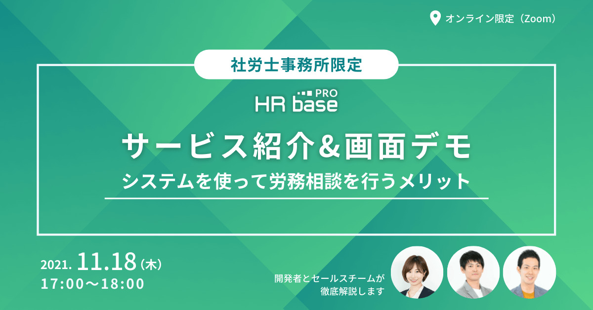 クラウドツールの導入には、さまざまな検討材料が必要です。HRbase PROでは、安心して導入いただくために毎月、サービスの特徴をお伝えするセミナーを実施しております。何ができるか、事務所のどの課題を解決できるかを確認しにいらしてください。
