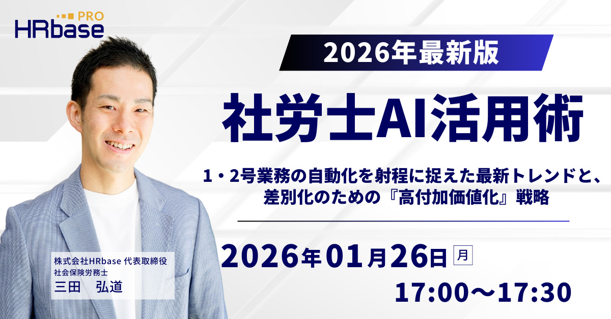 | セミナー名 | 【2026年最新版】社労士AI活用術~1・2号業務の自動化を射程に捉えた最新トレンドと、差別化のための『高付加価値化』戦略~ |