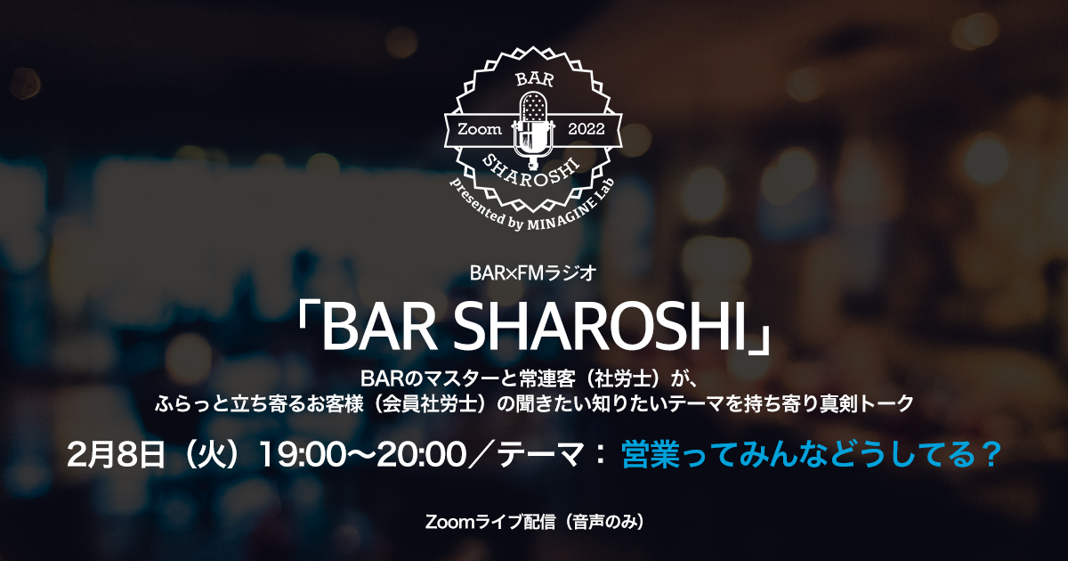 ※BAR SHAROSHIの参加はミナジンラボ スタンダード会員登録が必須です。事前にご登録をお願いいたします。
