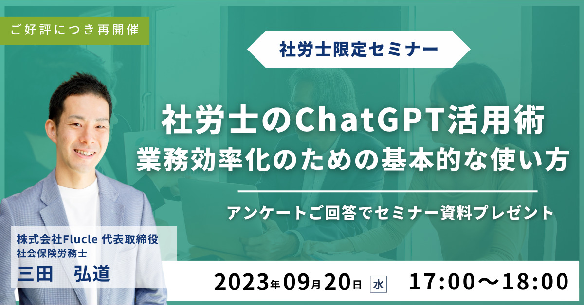 本セミナーは、6月・7月・8月開催「【社労士のChatGPT活用術】業務効率化のための基本的な使い方」