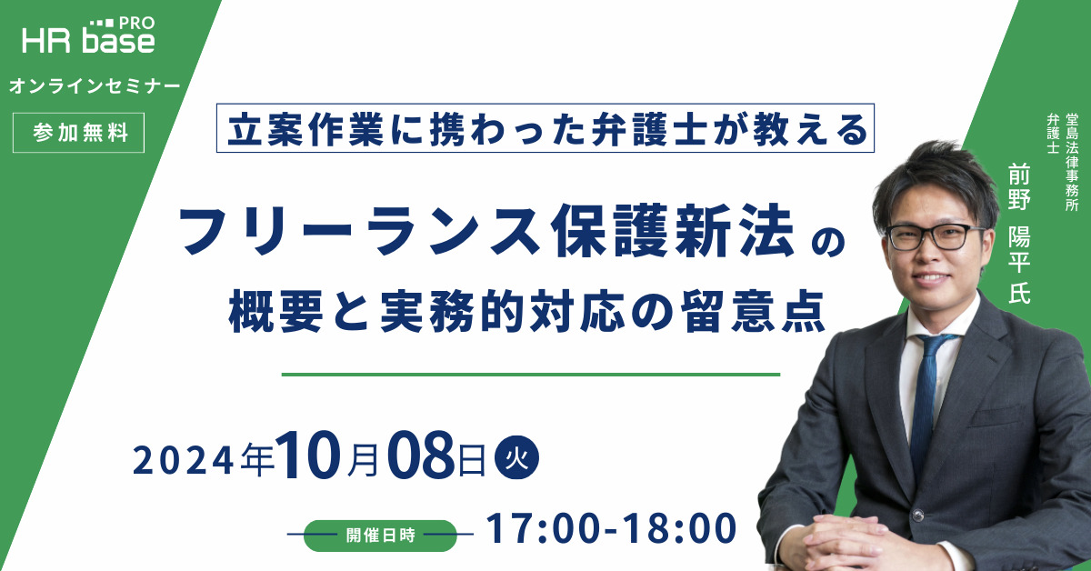 | セミナー名 | 【立案作業に携わった弁護士が教える】フリーランス保護新法の概要と実務的対応の留意点 |