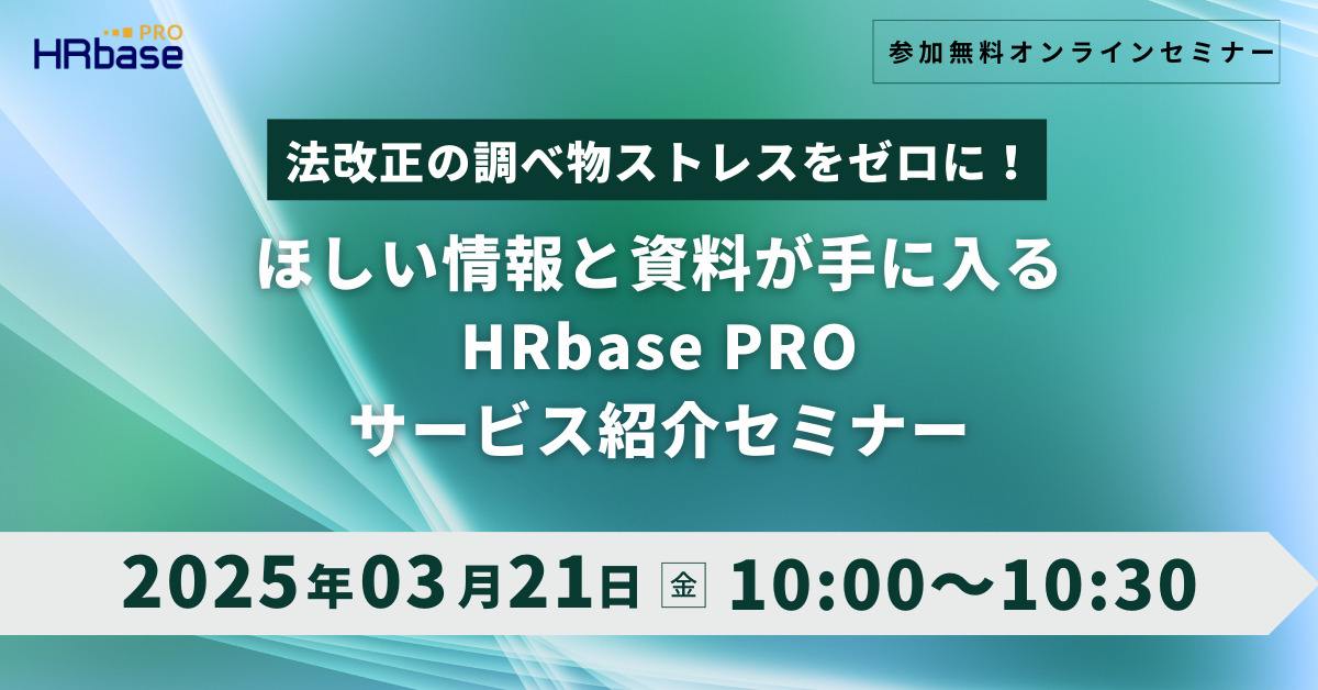 | セミナー名 | 法改正の調べ物ストレスをゼロに!ほしい情報と資料が手に入るHRbase PROサービス紹介セミナー |