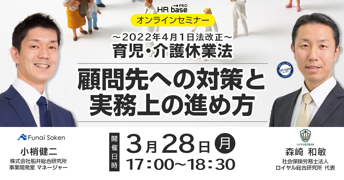 法改正はビジネスチャンス。そのビジネスチャンスを最大限活用するために重要なことは「実践事例の情報収集」です。本セミナーでは、2021年に事業会社向けにセミナー講演をおこない、1,000名を集めた社会保険労務士法人ロイヤル総合研究所代表社員の森崎先生(HRbase PRO認定講師)に実践事例をお話しいただきます。