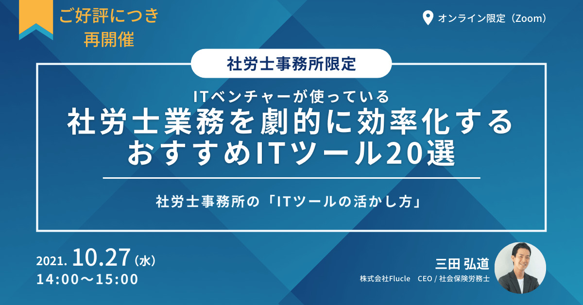 | 【人気につき再開催】ITベンチャーが使っている、社労士業務を劇的に効率化するおすすめITツール20選 | |
