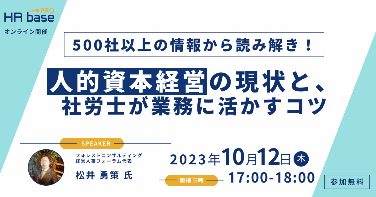 | セミナー名 | 【500社以上の情報から読み解き!】人的資本経営の現状と、社労士が業務に活かすコツ |