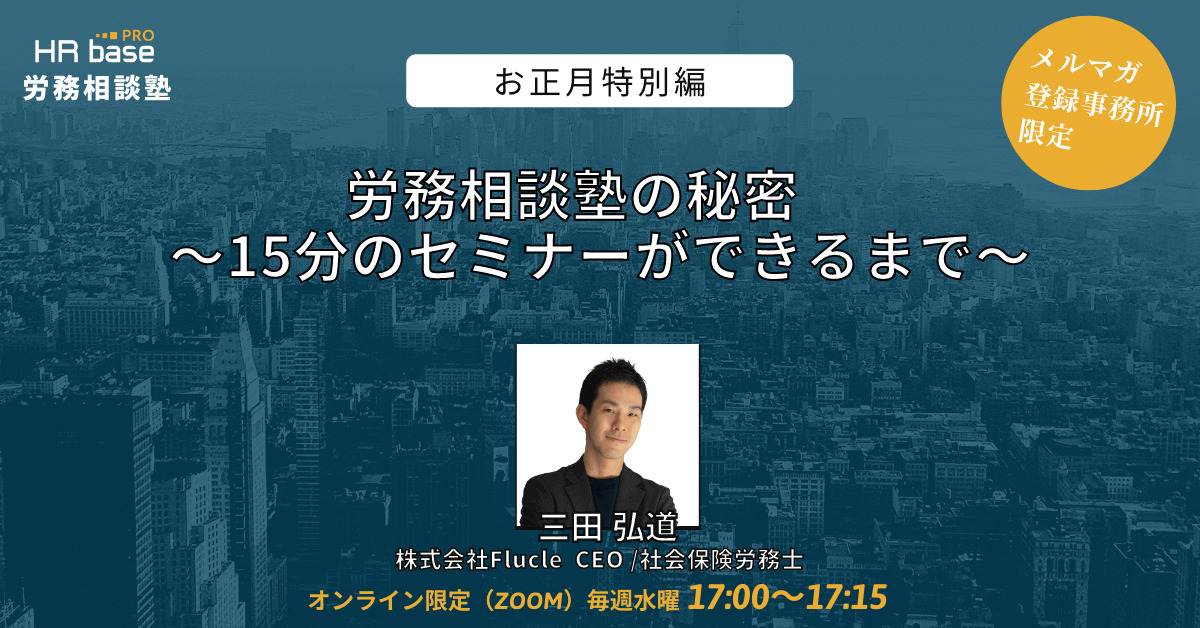 | 【お正月特別編】15分でスキルアップ! HRbase PRO労務相談塾【毎週水曜17:00〜17:15】 | |