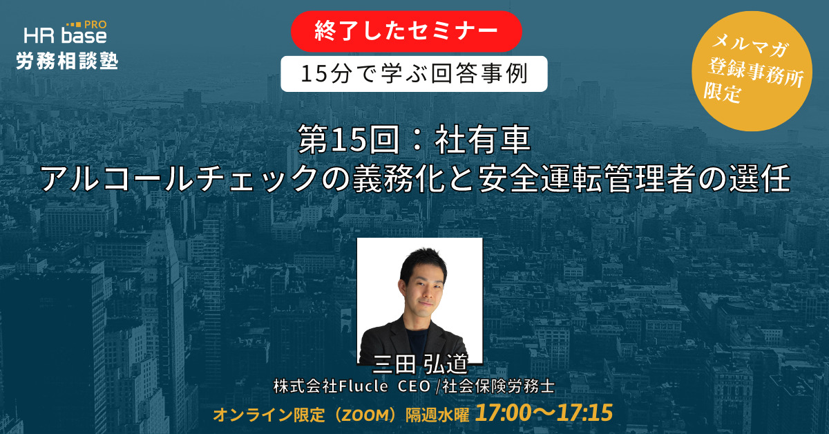 | 【第15回】15分でスキルアップ! HRbase PRO労務相談塾【毎週水曜17:00〜17:15】 | |
