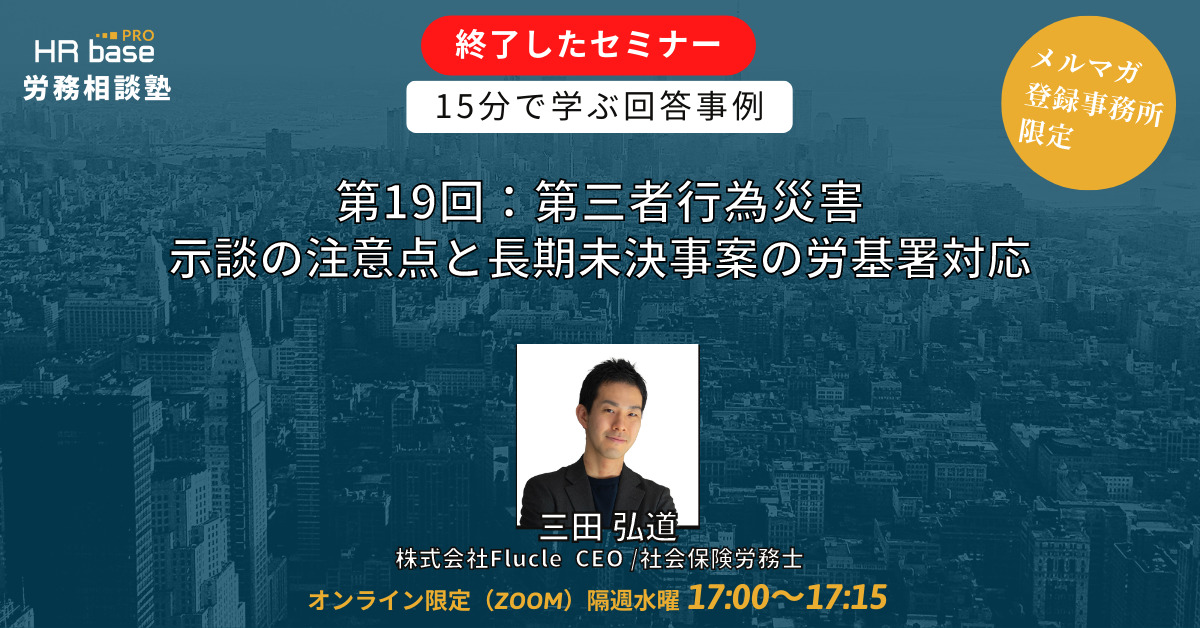 | 【第19回】15分でスキルアップ! HRbase PRO労務相談塾【毎週水曜17:00〜17:15】 | |
