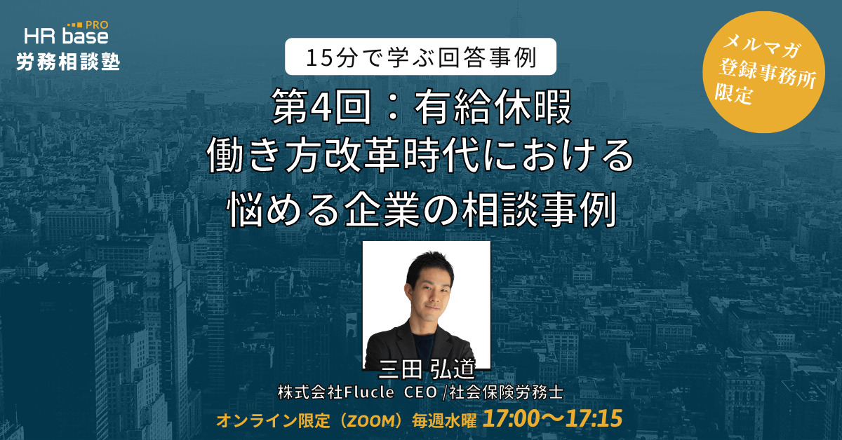 | 【第4回】15分でスキルアップ! HRbase PRO労務相談塾【毎週水曜17:00〜17:15】 | |