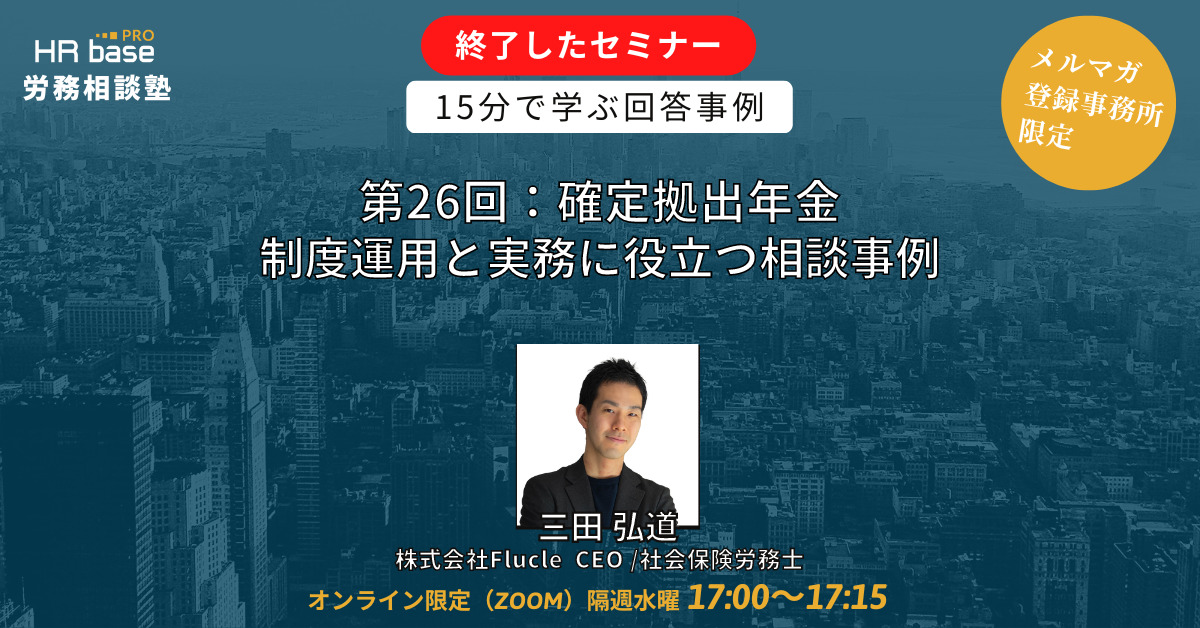 | 【第26回】15分でスキルアップ! HRbase PRO労務相談塾【隔週水曜17:00〜17:15】 | |