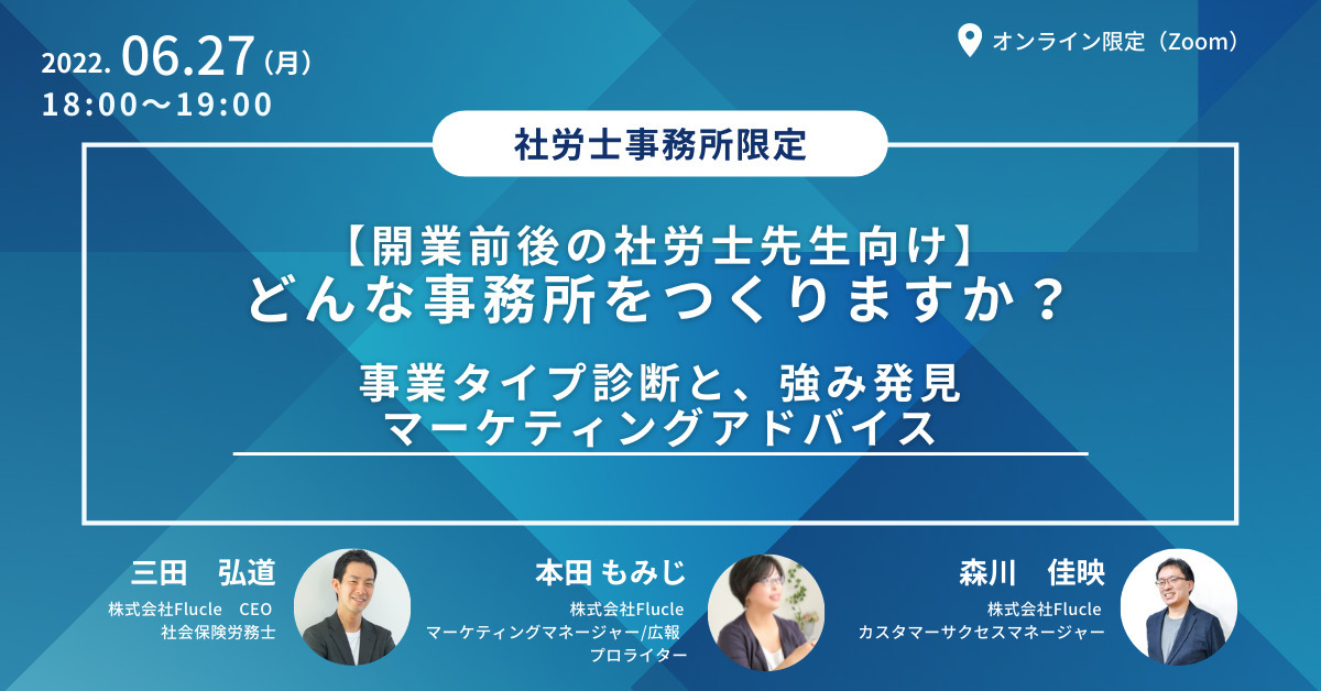 2022年後半、社労士のニーズはさらに高まっていくと考えられます。顧問先にぴったりフィットする形で価値提供をするためにも、事務所の方向性を決めることが大切ではないでしょうか。セミナーへのご参加、お待ちしております。