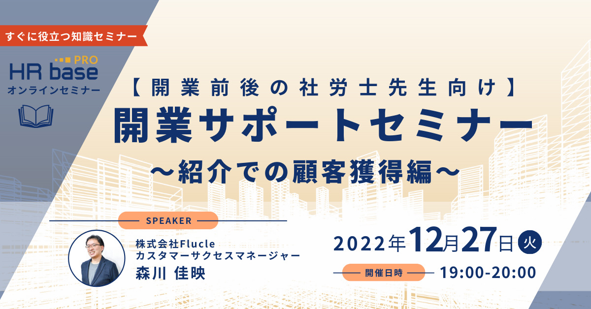 | 【開業前後の社労士先生向け】開業サポートセミナー ~紹介での顧客獲得編~ | |