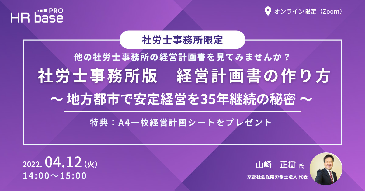 そこで今回は、京都社会保険労務士法人 代表、山崎 正樹先生に登壇いただき、経営計画書の作り方を解説いただきます。
