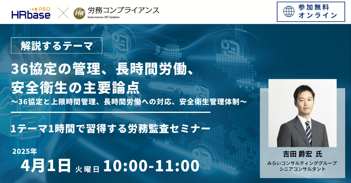 【第4回】 36協定の管理、長時間労働、安全衛生の主要論点