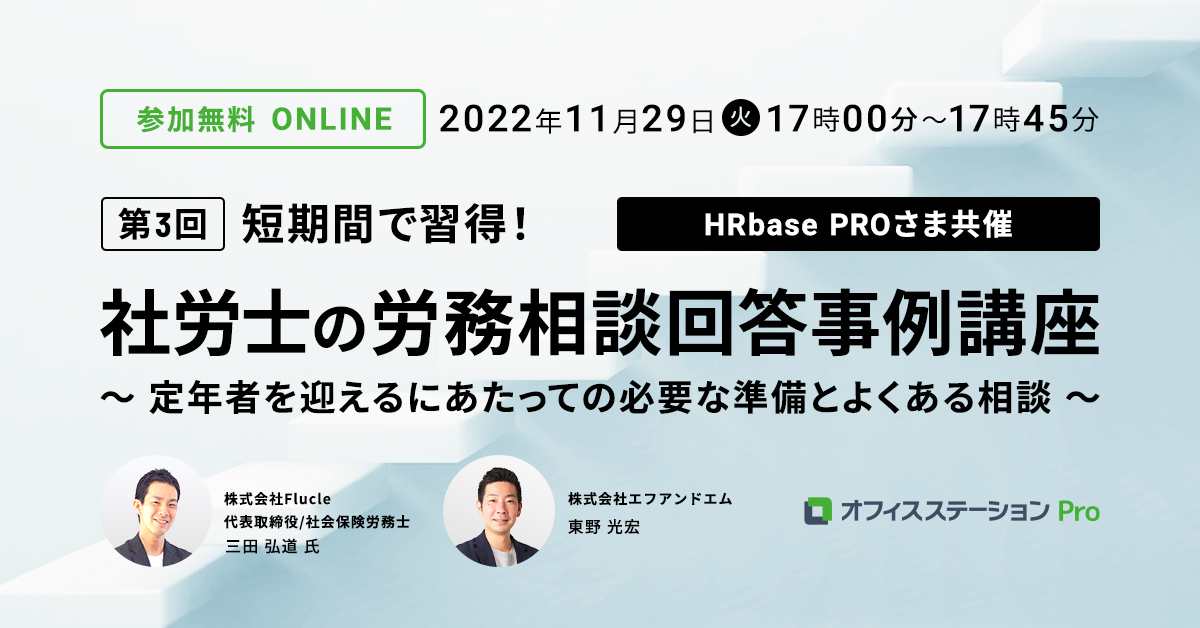 HRbase PROの大人気定期開催セミナー「労務相談塾」を、オフィスステーションさまにて出張開催いたします。