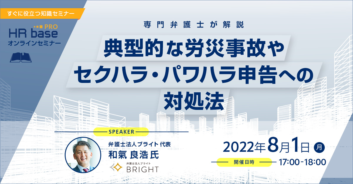 厚生労働省によると、昨年は労働災害による死亡者数が867人と4年ぶりに増加し、休業4日以上の死傷者数は149,918人と平成10年以降の最多を記録しています。このように、労災による被害は未だ多発しており、社労士先生にご相談がくることも多いのではないでしょうか。また、近年ではパワハラ、セクハラなどハラスメント被害も増加しており、顧問先の労働トラブルは絶えず、増え続けています。しかし、そうした相談はその後法的トラブルに発展する可能性もあり、初期対応や弁護士先生にどう引き継ぐかが重要となってきます。そこで、今回は典型的な労災事故のケースを取り上げたうえで、社労士が取るべき対処法を説明しつつ、近年増加する、従業員からのセクハラ・パワハラ申告への対処法について解説していただきます。
