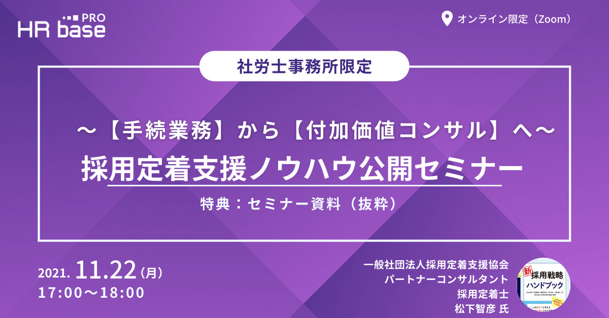 | ~【手続業務】から【付加価値コンサル】へ~採用定着支援ノウハウ公開セミナー | |