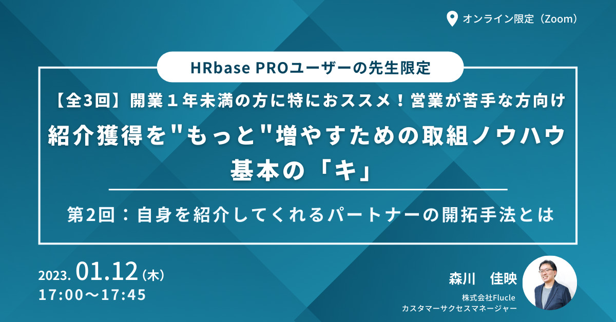 HRbasePROをご利用いただいている先生方限定でのセミナーを開催!今回は「紹介獲得について」をテーマに、全3回でセミナーを実施させていただきます。