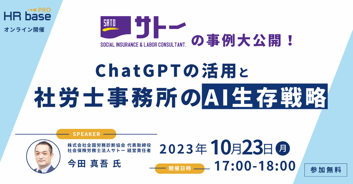 | セミナー名 | 【社労士法人サトーの事例大公開】ChatGPTの活用と社労士事務所のAI生存戦略 |
